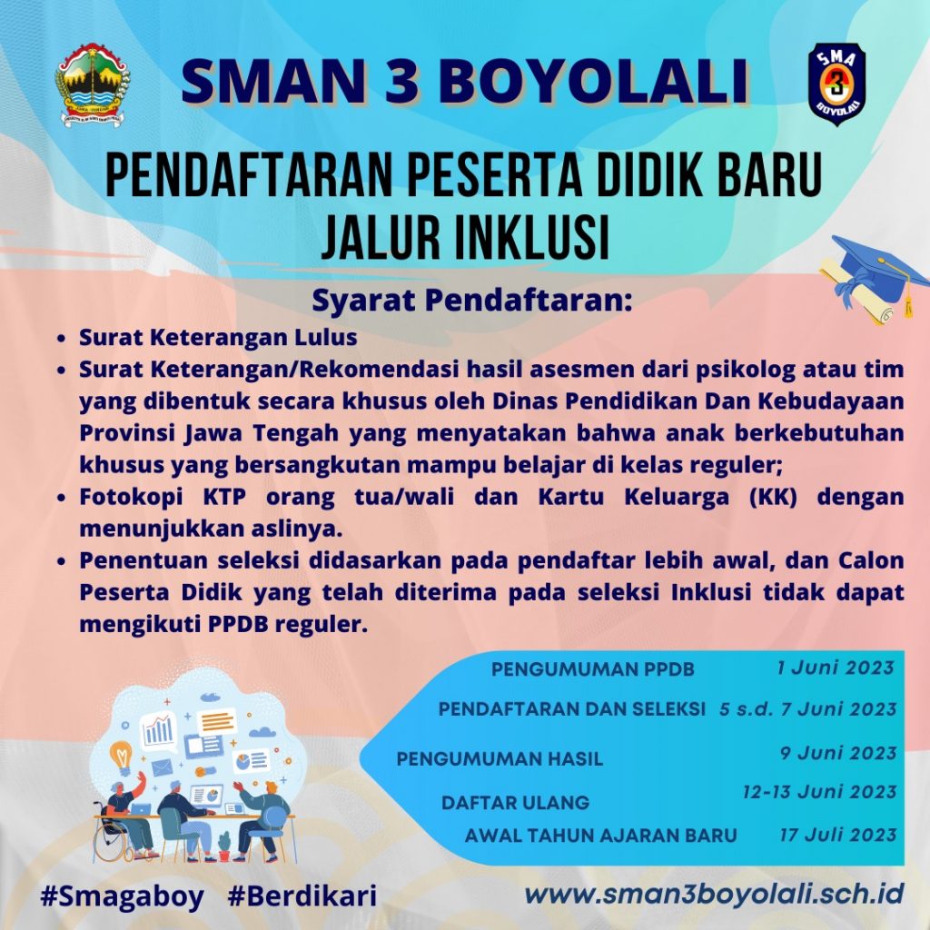 Berikut kami infokan Jadwal PPDB Siswa Inklusi Tahun 2023, untuk teknisnya masih seperti Tahun lalu yang sebelum mendafatar akan dilakukan Assesment kepada Siswa yang berlokasi di perwakilan Kabupaten Kota, dan untuk Informasi lebih lanjut terkait dengan PPDB bisa di buka juknis PPDB 2023/2024.